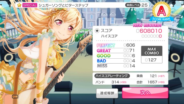 そして、超ギリギリでしたが、25新規クリア。知る人ぞ知る(使い方あってる?)、シュガーソングとビターステップ!